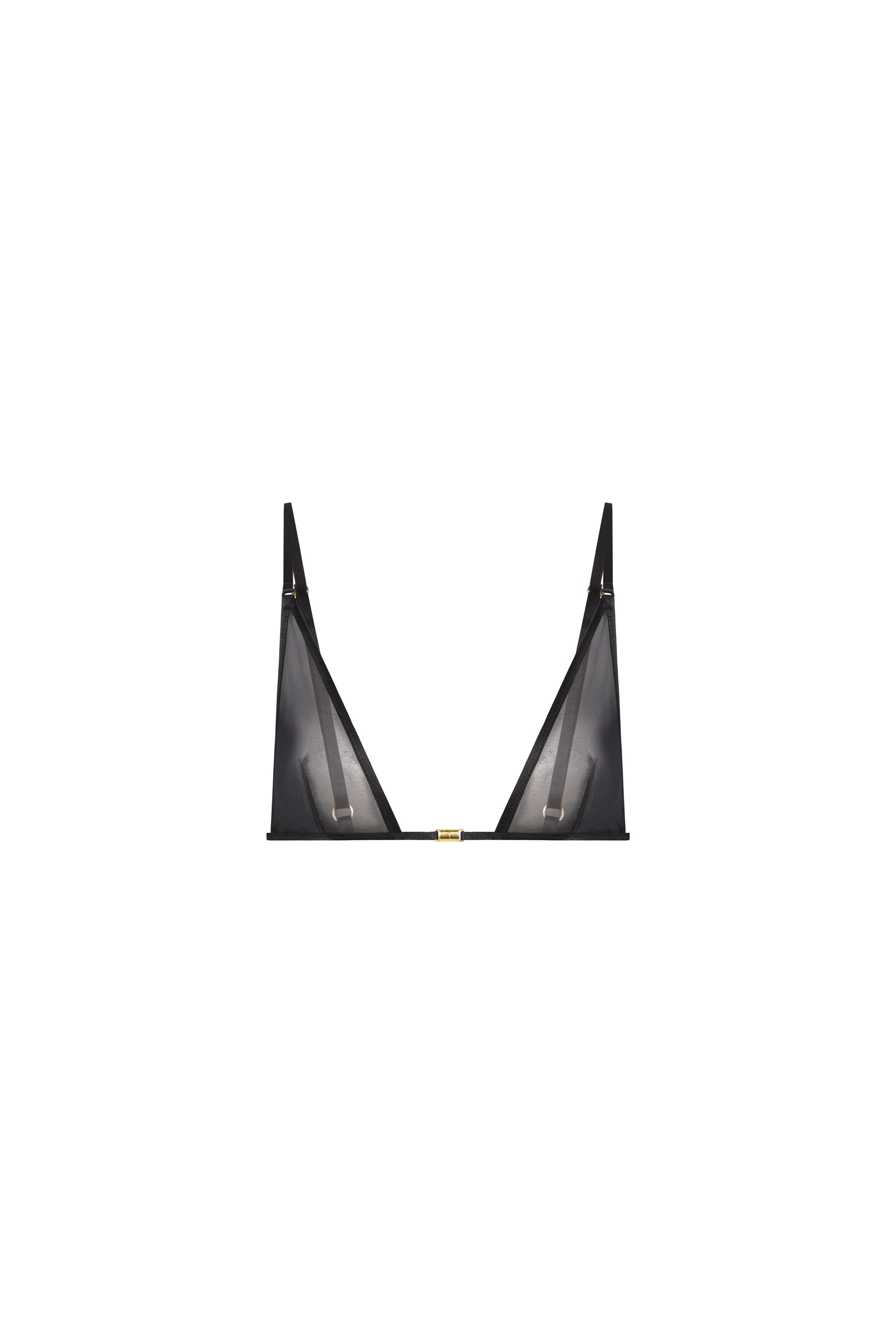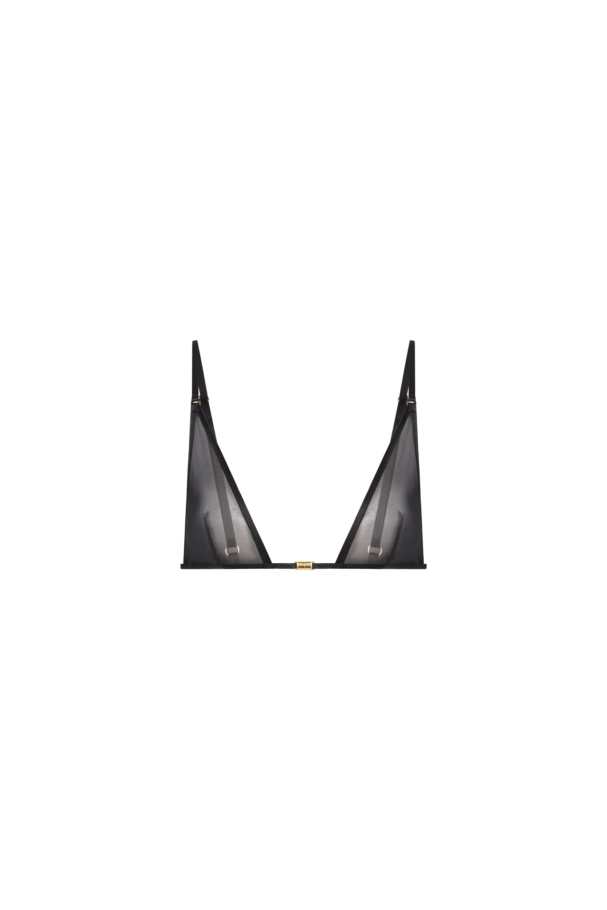 ELONGATED TRIANGLE BRA CONSTRUCTED OF PREMIUM ITALIAN MESH WITH TONAL SILK BINDING.