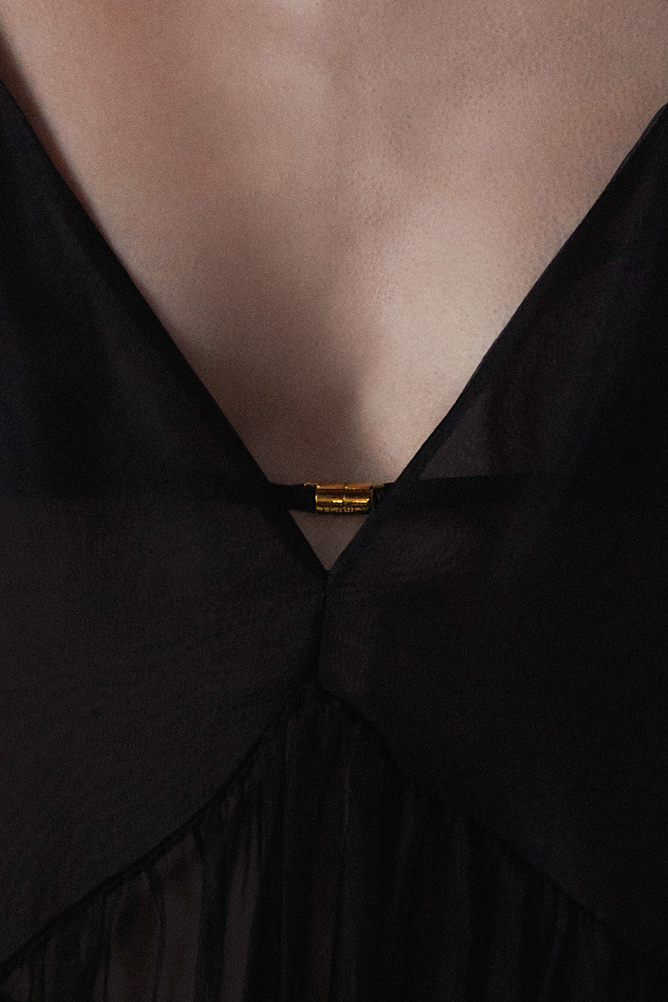 THE BRA CLASP, WHICH IS MORE JEWELLERY THAN HARDWARE, IS SHAPED LIKE A CEREMONIAL AMULET; BOWING DOWN TO TEMILY’S REVERENTIAL NATURE. BECAUSE IN THE END, THE BODY IS SPIRIT ANYWAY.