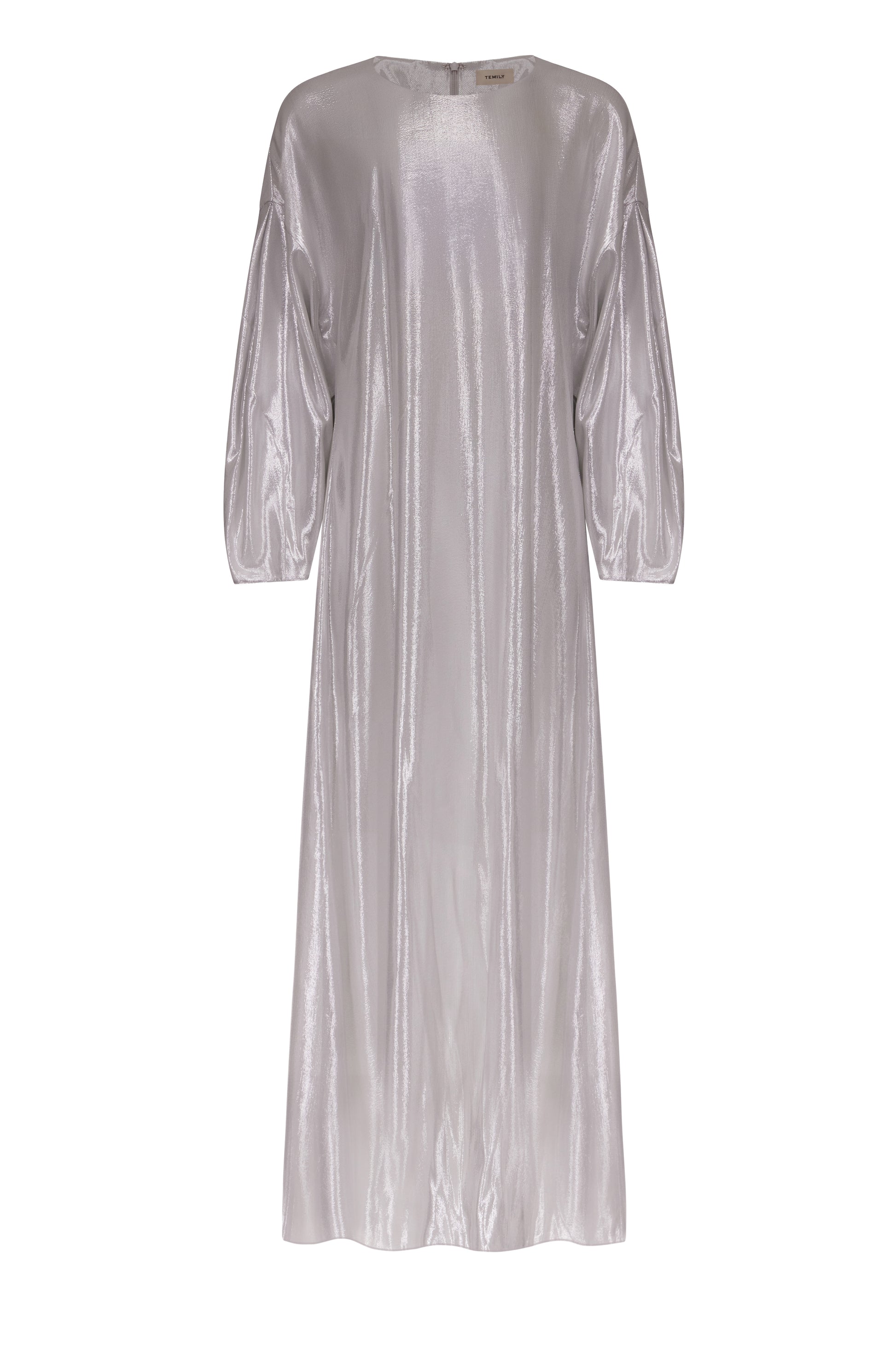 Generously cut column dress which offers a pared-back, minimalistic take on evening wear. the sweep is pared-back and understated.
